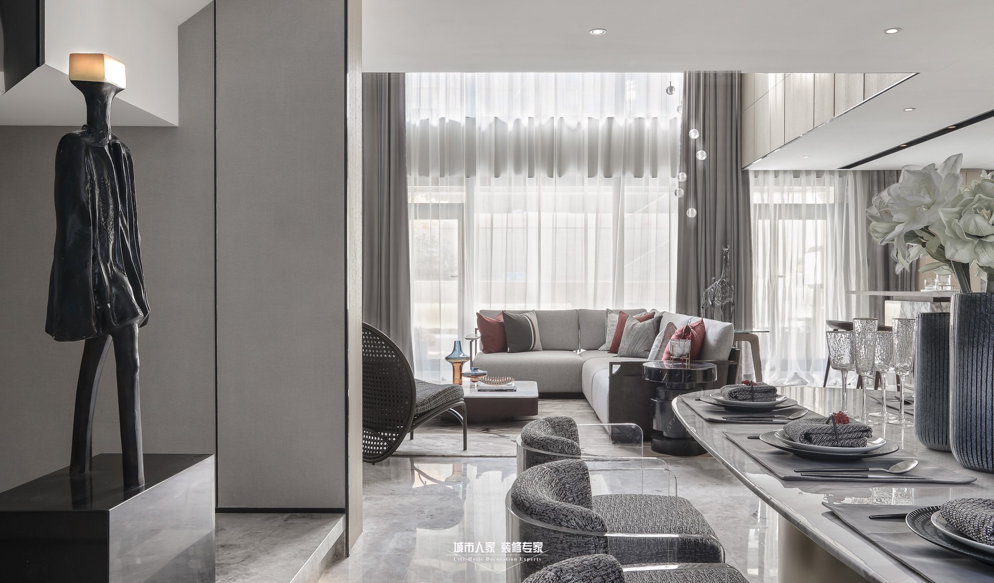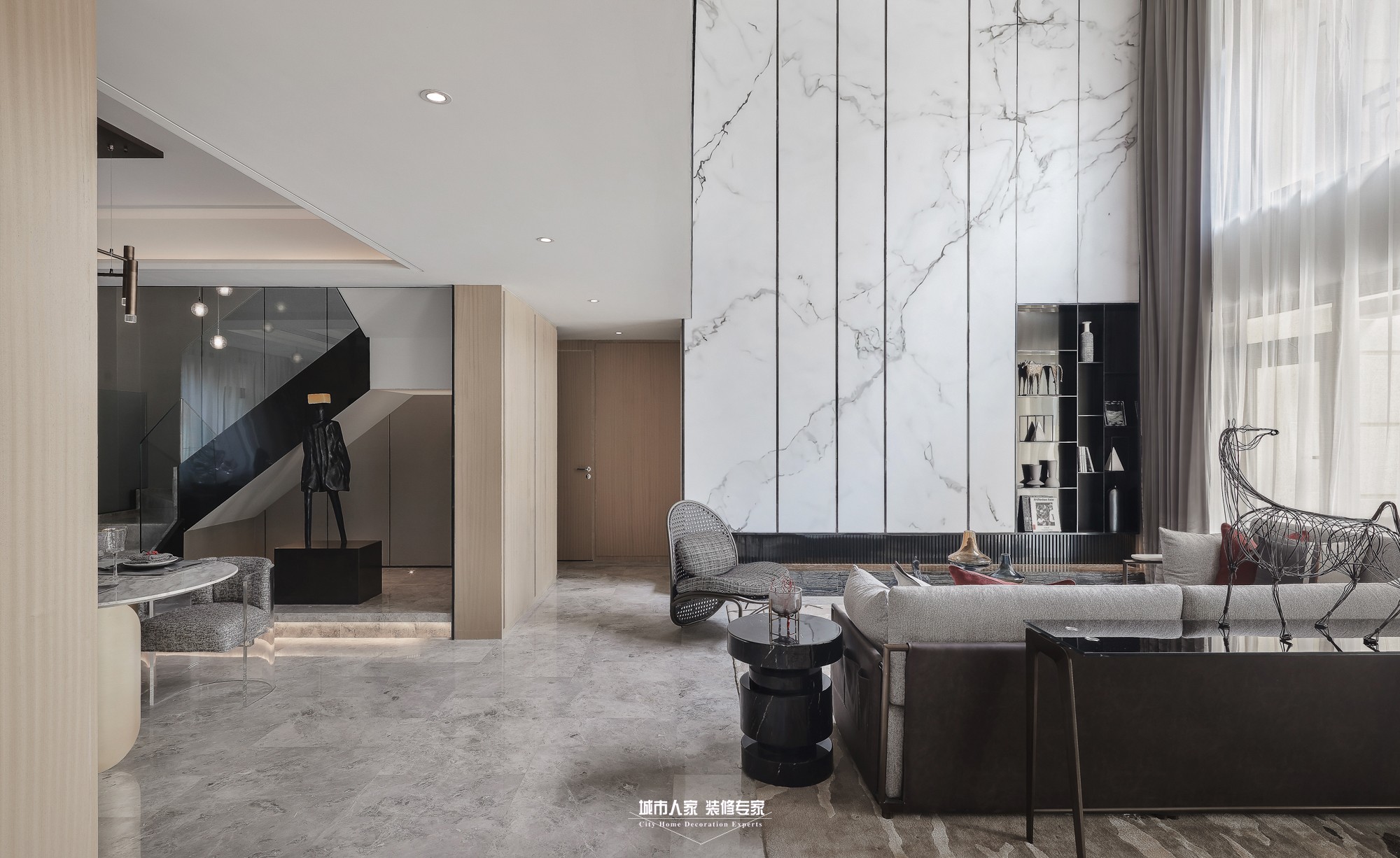 設計團隊結合空間自身特征,秉持大道至簡的哲學,寧神靜氣沉密神采,重現詮釋當代簡約風格。倡導純粹、自然、極簡,堅持給空間留白,給藝術留空間。